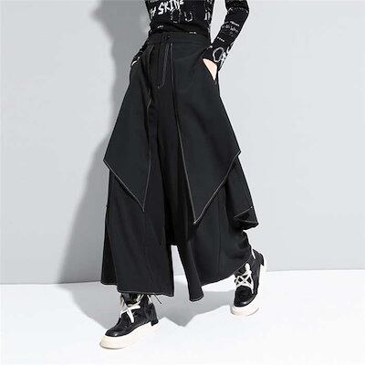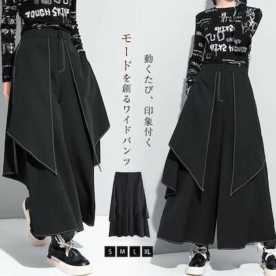 ワイドパンツ レディース レイヤード ガウチョパンツ ロング丈春 秋 冬 ボトムス キュロット パンツ フレアパンツ 体型カバー 無地 リラックス ワイド 着痩せ 美脚 通勤 オフィス 上品 きれいめ