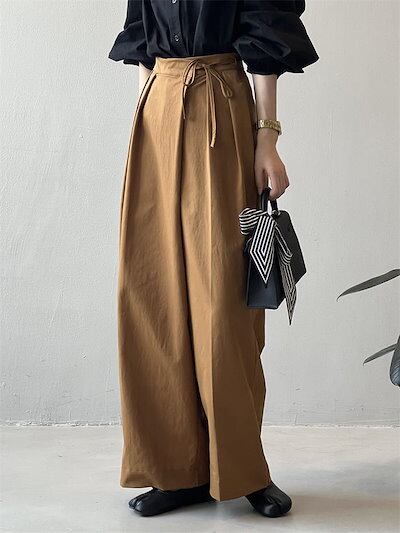 タック ワイドパンツ レディース ロング丈 秋冬 アシンメトリー ボトムス ロングパンツ レディースボトムス 無地パンツ タックパンツ イージーパンツ レディースワイドパンツ 春 夏 秋 春夏 ワイド