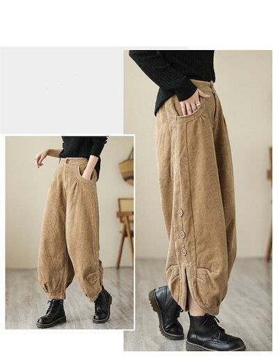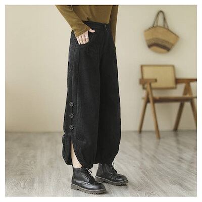 コーデュロイ パンツ レディース ワイド 低身長 コーデュロイパンツ 秋冬 冬 春 ワイドパンツ 大きいサイズ リラックスパンツ ボトムス 体型カバー ウエストバックゴム バルーンパンツ サーカスパン