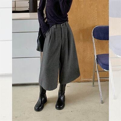 ワイドパンツ レディース 秋冬 9分丈 ワイド ボトムス 春 秋 無地 パンツ ロング丈 ワイド フレアパンツ ガウチョパンツ イージーパンツ ポケット リラックス 体型カバー ゆったり 春秋 夏 カ