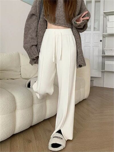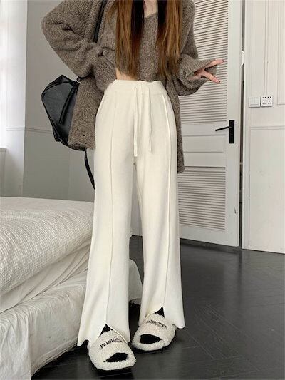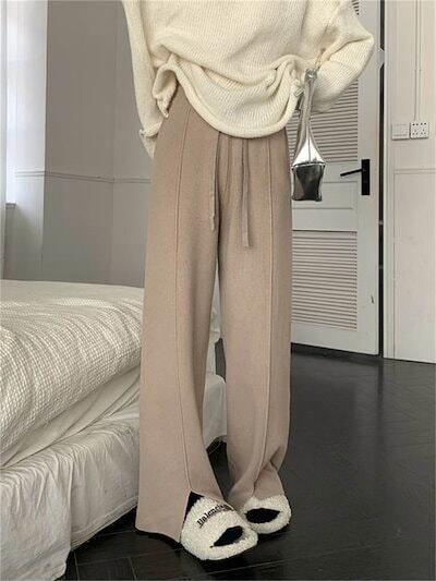 ニット ワイドパンツ レディース スリット ゆったり ニットパンツ 秋冬 イージーパンツ ロングパンツ 秋 冬 春 ロング ニットワイドパンツ リラックスパンツ ワイド ストレッチ 極暖 暖かい 防寒