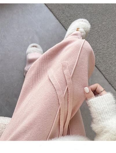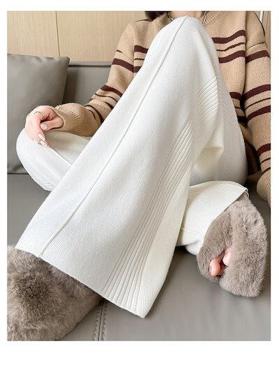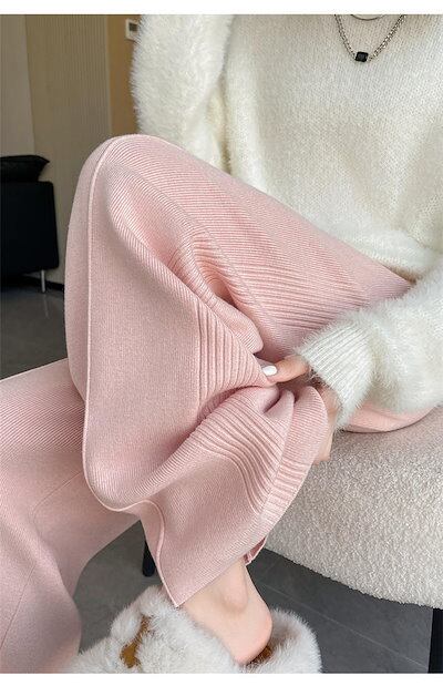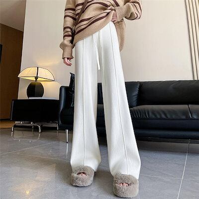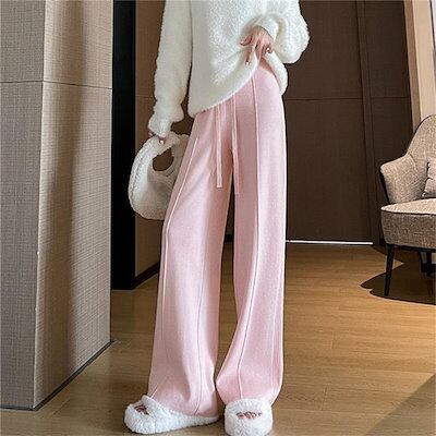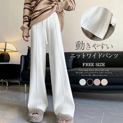 ニット ワイド パンツ レディース ストレッチ 秋冬 大人 可愛い リブニット ニットパンツ イージーパンツ ワイドパンツ ロングパンツ セミワイド 秋 冬 春 リラックス ボトムス 重ね着 無地 体