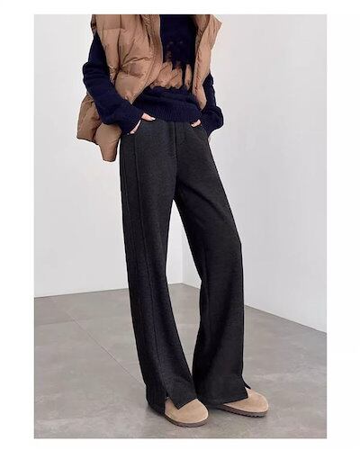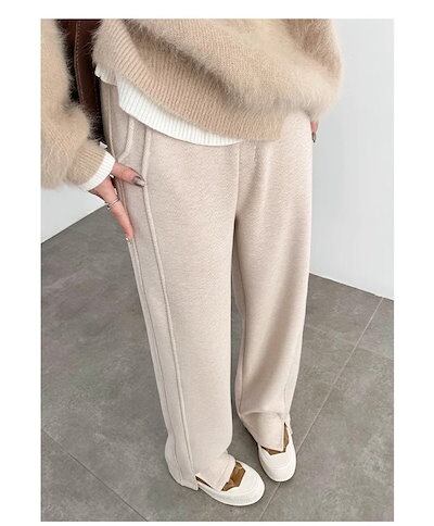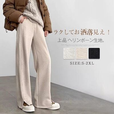 パンツ レディース ヘリンボーン ワイドパンツ 裏起毛 パンツ 秋冬 春 スリット おしゃれ セミワイドパンツ イージーパンツ ロングパンツ セミワイド 秋 冬 春 リラックス ボトムス きれいめ 体