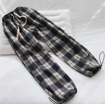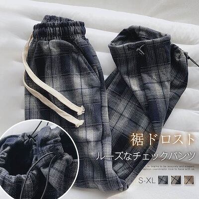 裏起毛 パンツ レディース きれいめ チェック 春 秋 冬 レディース ワイドパンツ 長ズボン チェックパンツ ガウチョパンツ ウエストゴム パンツ ゆったり ボトムス ロング リラックス 裾ドロスト