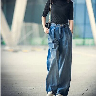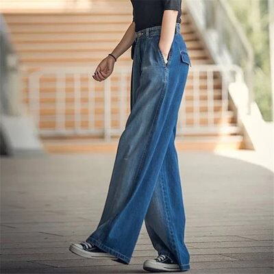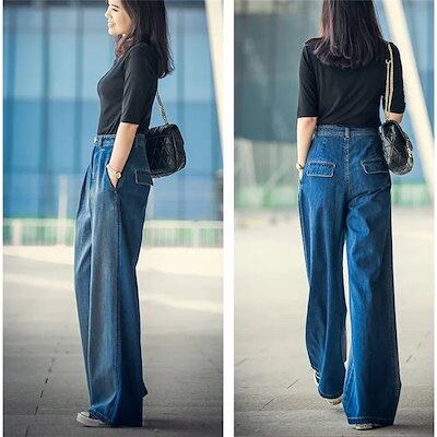 デニム ワイドパンツ デニムワイドパンツ レディース ジーンズ デニムパンツ ロングパンツ ボトムス ハイウエスト 体型カバー 大人 カジュアル 可愛い シンプル