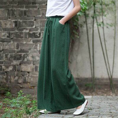 ワイドパンツ ロングパンツ レディース ボトムス パンツ ズボン 長ズボン ボヘミアン ワイド ハイウエスト ウエストゴム 綿 コットン 麻 リネン 綿麻 体型カバー 細見え 高見え 素材感 通気性