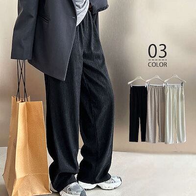 ワイドパンツ レディース イージーパンツ ガウチョパンツ ロング ワイド シワ加工 ワイド ガウチョ ボトムス ズボン 長ズボン リラックス ハイウエスト ウエストゴム 大きいサイズ ポケット付き ル