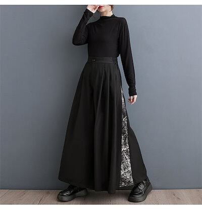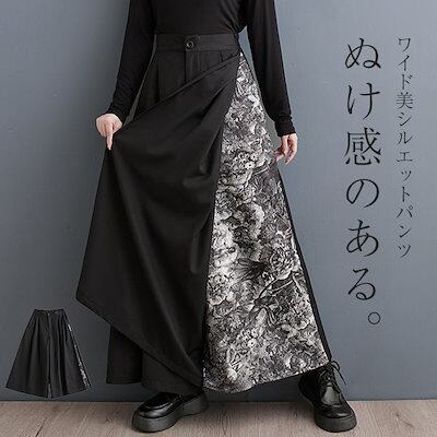 パンツ ワイドパンツ レディース きれいめ 切り替え ロング ガウチョパンツ ボトムス ズボン ワイドガウチョパンツ イージーパンツ 楽ちん フレアパンツ カジュアル 体型カバー 体型隠し ブラック