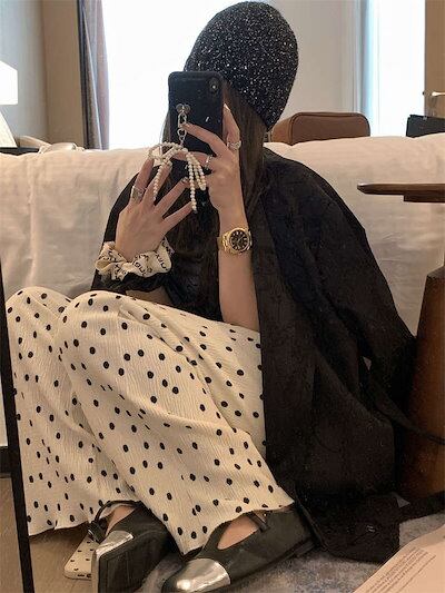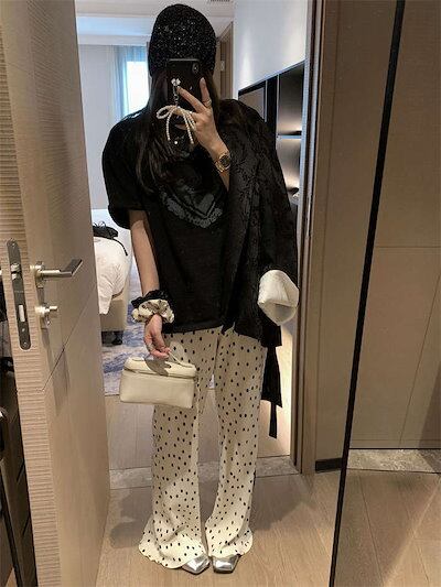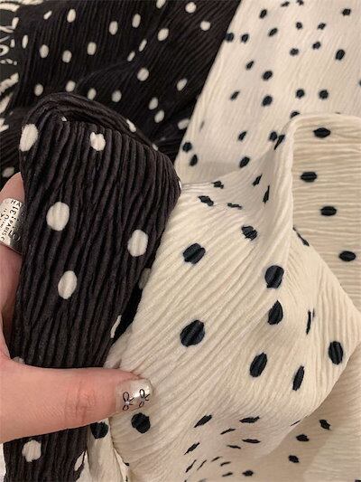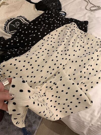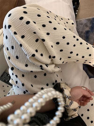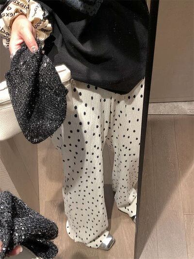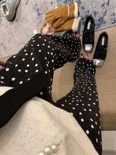 パンツ プリーツ レディース きれいめ ロング プリーツパンツ ワイドパンツ ワイド 水玉 ドット ガチョウパンツ フレアパンツ インナーパンツ ルームウェア ハイウェスト ウェストゴム サイドポケッ