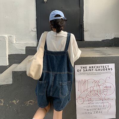 2024夏新作 サロペット 着痩せ 脚長効果 ゆったり ワイドパンツ デニムロングワンピース ショットパンツ ロング デニムワンピ きれいめ レディース 大きいサイズ マキシ丈