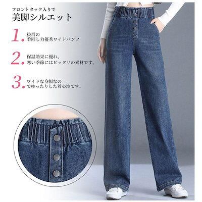 lucky boxワイドパンツ デニムパンツ レディース 暖か デニム デニムパンツ裏起毛パンツ あったか ボア ジーンズ パンツ デニムパンツ 暖パン 防寒 服