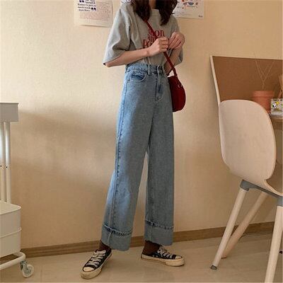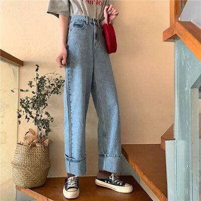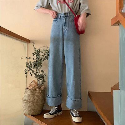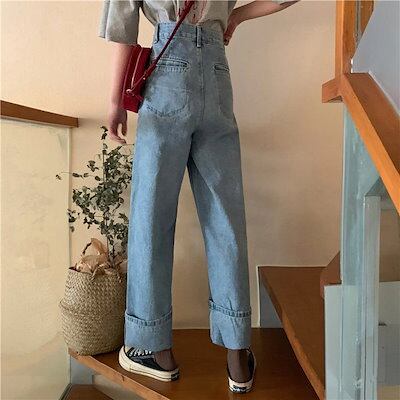 の早割おしゃれ ハイウエスト デニム パンツレディース ヴィンテージ ワイドパンツ デニムパンツ カレッジ風 ジーンズ
