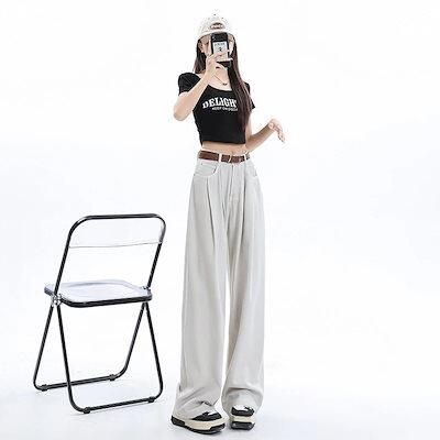 3日以内出荷脚長効果デニムパンツ ワイドパンツ レディース ハイウエスト お腹 薄手 ドレープ ゆったり 多用途 韓国ファッション