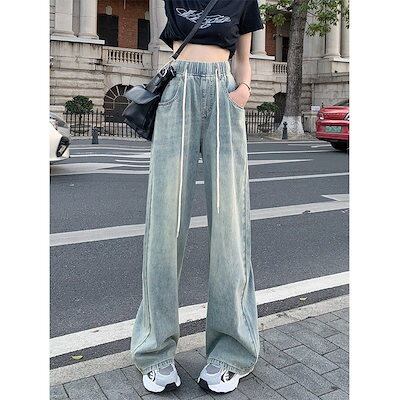 デニムパンツ ウエストゴム ワイドパンツ ジーンズ レディース の新作 ゆったり ハイウエスト 薄手 小さい モップパンツ 韓国