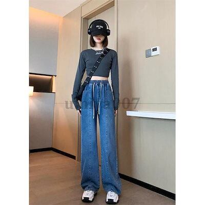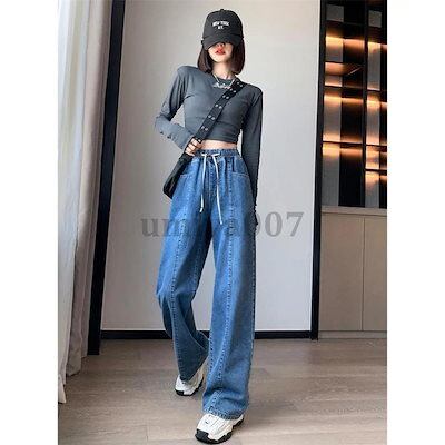 新作 デニムガウチョ ワイドデニム ワイドパンツ ガウチョ レディース ジーンズ デニムパンツ 大きいサイズ ハイウエスト ウエストゴム 体型カバー
