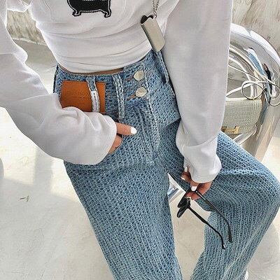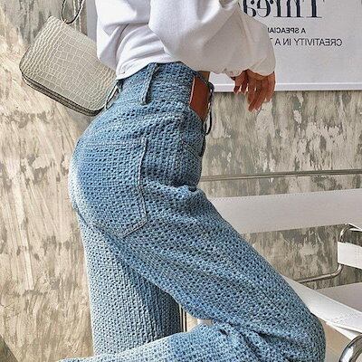 Kashi デニムパンツ ゆったり ワイドパンツ 着痩せ ジーパン ジーンズ ストレート レディース 3