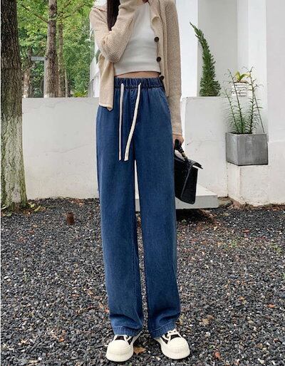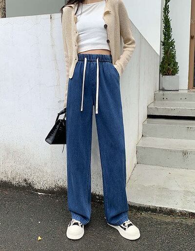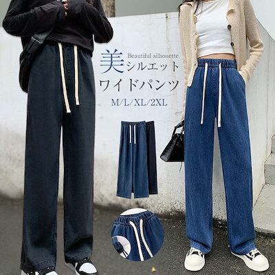 24新作 デニムパンツ ワイドパンツ レディース 大きいサイズ ウエストゴム 美脚 デニム ジーンズ パンツ ガウチョ ボトムス ロング ワイドデニムパンツ ゆったり ゆる シルエット 大人