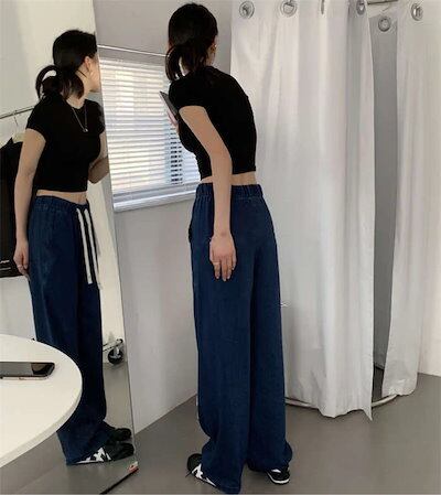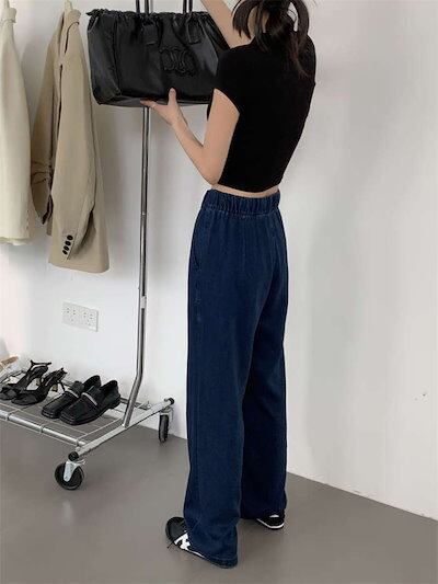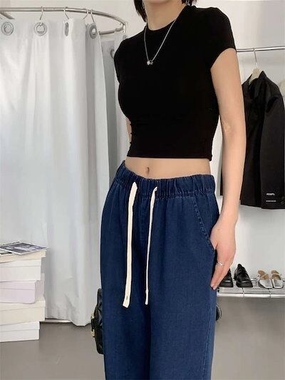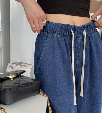 24新作 パンツ レディース デニムワイドパンツ 冷感 ゆるパンツ ひんやり 薄手 ウエストゴム ロング丈 無地 ガウチョ ボトムス 接触冷感 デニムパンツ UVカット 着痩せ 美脚 通