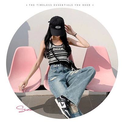 24新作 ワイドパンツ ダメージジーンズ レディース 新商品 ハイウェスト ゆったり 着痩せ デザイン感 調節可能 九分丈パンツ