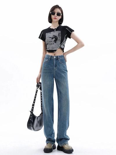ワイドパンツ ロングズボン 長ズボン ハイウェストゆったり デザイン感 レディース服 ロングパンツ ジーンズ 着痩せ レディースドレープ感 ワイドパンツ ジーンズ デニムボトムス