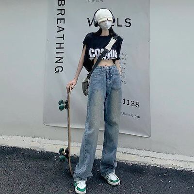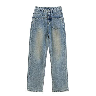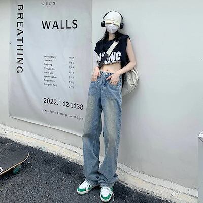 ワイドパンツ ロングズボン 長ズボン ハイウェストゆったり デザイン感 レディース服 ロングパンツ ジーンズ 着痩せ レディースストレート ワイドパンツ ジーンズ デニムボトムス