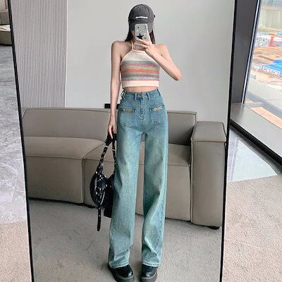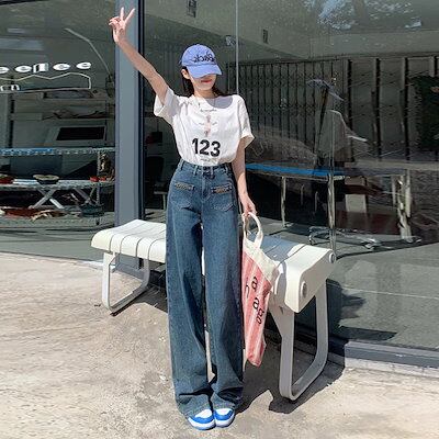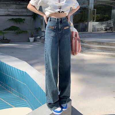 ワイドパンツ ロングズボン 長ズボン ハイウェストゆったり デザイン感 レディース服 ロングパンツ ジーンズ 着痩せ レディースモップパンツ ワイドパンツ ジーンズ デニムボトムス