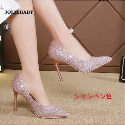 パンプス 痛くない 結婚式 レディース ポインテッドトゥ ヒール5cm/7cm/10cm キラキラ ウェディングシューズ ハイヒール ピンビール パンプス 21.5-25.0