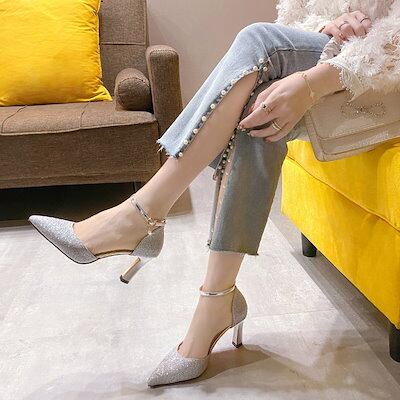 ストラップパンプス ハイヒール ピンヒール パンプス ラメ キラキラ 通勤用 仕事 美脚パンプス 痛くない ベーシック シンプル 華やか フォーマル パーティー 結婚式 披露宴 謝恩会 お呼ばれ 大き