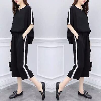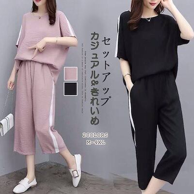 2025夏 新作 おしゃれ 流行り 気質 二点セット 大きいサイズ ゆったり カジュアル 半袖 Tシャツ ワイドパンツ セットレディースセットアップ涼しく楽ちんセットアップ ルームウェア 日焼け止め