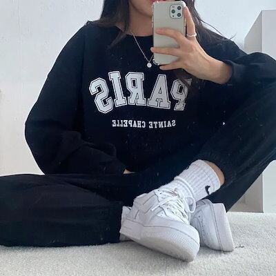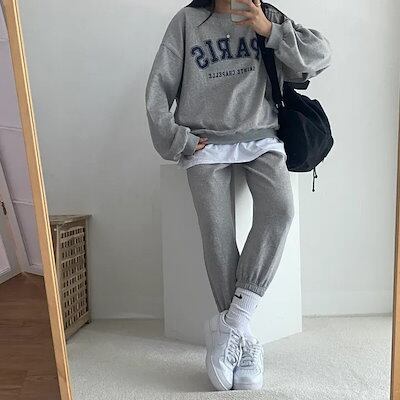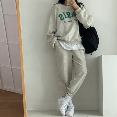 新作 おしゃれ シンプル スウェット セットアップ 裏起毛 厚手 着痩せ Tシャツ ワイドパンツ 二点セット セットアップ レディース 秋冬大きめサイズ