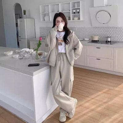 新作 シンプル 運動 セットアップ 着痩せ パーカー ワイドパンツ 二点セット レディースファッション 福袋 大きめサイズ スウエットセットアップ
