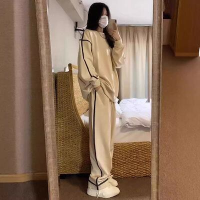 2025新作 シンプル スウエット セットアップ レディース レディースファッション パーカー トップス ワイドパンツ 二点セット 大きめサイズ