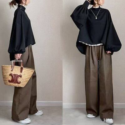 【日系人気商品!】【急速出荷】2025初春新品 大きめサイズ カジュアル セット スウエット+ワイドパンツ セットアップ 体型カバー トップス 二点セット レディースファッション メガ割商品