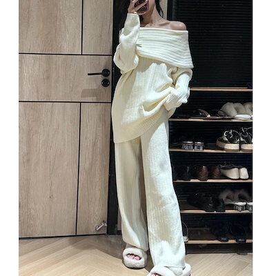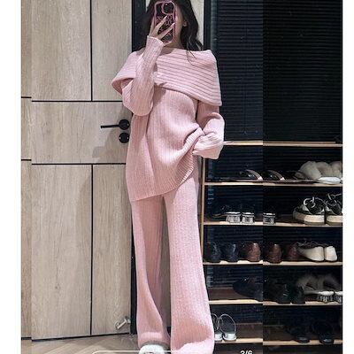 新作 シンプル 通勤 レディースセットアップ ニット セーター トップス ワイドパンツ 二点セット 気質 セット 大きめサイズ7