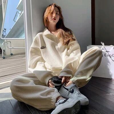 2024新作 カジュアル セットアップ レディース 裏起毛 厚手 パーカー スウェット 運動 ワイドパンツ 二点セット 着痩せ 大きいサイズ 裏起毛ファッション57