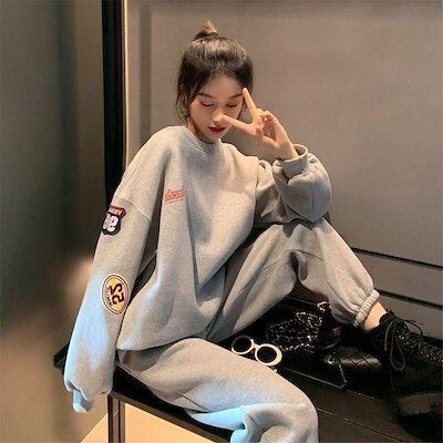 2024新作 シンプル カジュアル 裏起毛 セットアップ レディース レディースファッション 丸ネック Tシャツ トップス ワイドパンツ 二点セット 大きめサイズ7