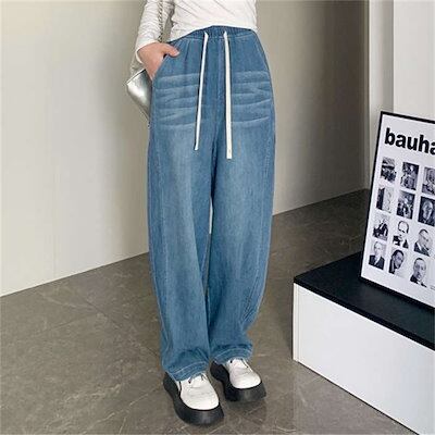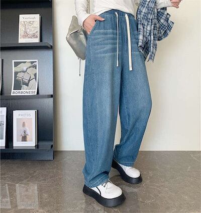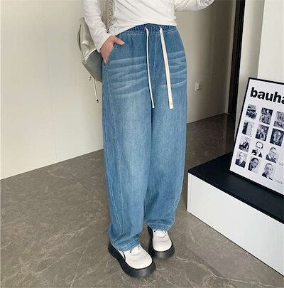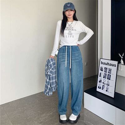 デニムパンツ レディース 大きいサイズ ダメージデニム ダメージ ジーンズ ボトムス ワイド ダメージジーンズ ゆったり ハイウエスト ダメージパンツ ワイドパンツ デニム ウエストゴム ロングタイプ