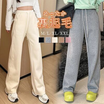 ワイドパンツ 裏起毛 レディース 極暖 ロングパンツ イージーパンツ 冬秋 厚手 ズボン 長ズボン ボトムス ストレートパンツ ハイウエスト ワイド ゆったり ウエストゴム 大きいサイズ カジュアル