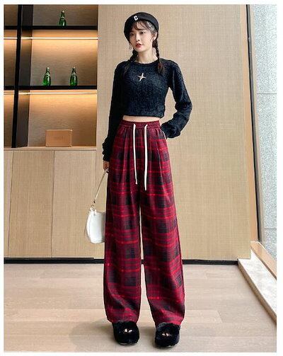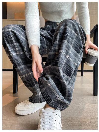 ワイドパンツ チェック柄 レディース チェックパンツ 裏起毛 ロング丈 ガウチョパンツ 体型カバー ロングパンツ 大きいサイズ ボトムズ 冬 秋 着痩せ 美脚 通勤 ゆったり 女性用 お洒落 快適 お