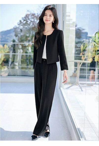 セットアップ スーツ レディース パンツスーツ フォーマル セレモニー ビジネススーツ 洗える 大きいサイズ テーラードジャケット&ワイドパンツ ノーカラージャケット 2点セット ママスーツ 入学式