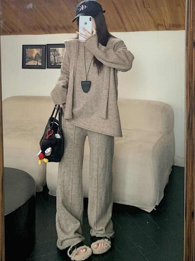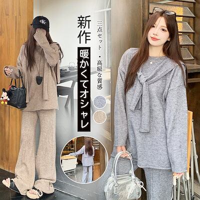2024秋冬 新作 上下3セット ベスト ファスナー 大きいサイズ 体型カバー レディース セットアップ快適 セット ニット ワイドパンツ