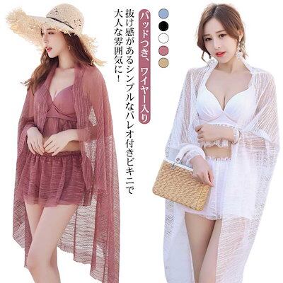 水着 レディース 3点セット ビキニ ショートパンツ パレオ付き フリル バッククロス 小胸 ワイヤー付き バスト 盛れる 体型カバー 露出控えめ お尻 太もも カバーアップ 女性 大人 代 30