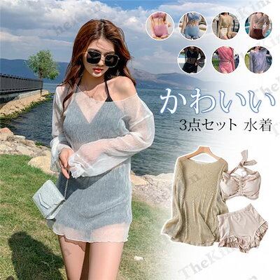水着セット ビキニ 海水浴 海 砂浜 3点セット 水着 レディース 体型カバー タンキニ 夏 人気 フリル フレア 潜水 韓国風 可愛い 長袖 セパレート 温泉 セクシー 20代 30代
