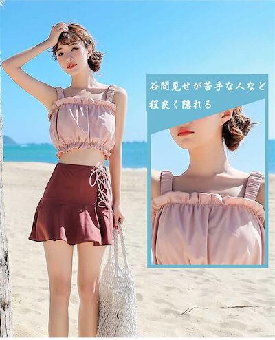 水着 レディース タンキニ 体型カバー セパレート 可愛い ビキニ オフショルダー 盛れる タンキニ リゾート へそ出し お洒落 タンキ二 肩だし 体型カバー 肩だし カバーアップ 短パン付き
