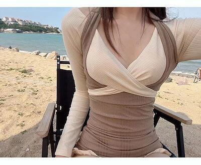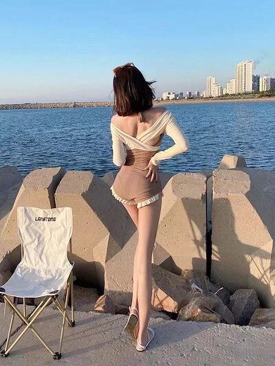水着 ガール 可愛い 痩せ見え リゾート ワンピース水着 クロスデザイン オトナ女子 かわいい おしゃれ ボーイレッグ 長袖 体型カバー レディース 温泉 ビーチ プール 海 水泳 セクシー 韓国風