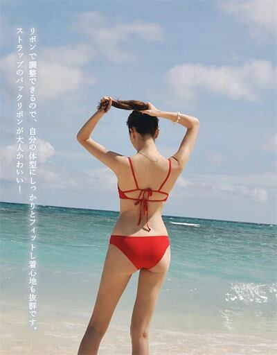 水着 レディース ビキニ オシャレ 可愛い 2点セット オトナ女子 バックリボン スイムウエア クロス シンプル ベーシック 無地 ワンカラー ブラ ショーツ 太め 海 ビーチ プール リゾート