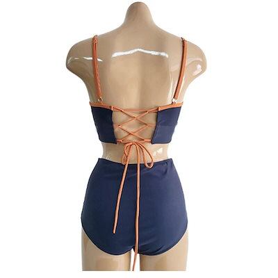韓国系 配色 ハイウエスト ス 体型カバー ビーチ レディース M L XL タンキニ 水着