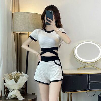 韓国ファッション 水着 レディース ラッシュガード 水着 体型カバー ビキニ 水着 水着 ビキニ水着スチールサポートギャザーセクシーな胸ローライズスリーポイント温泉スプリット水着