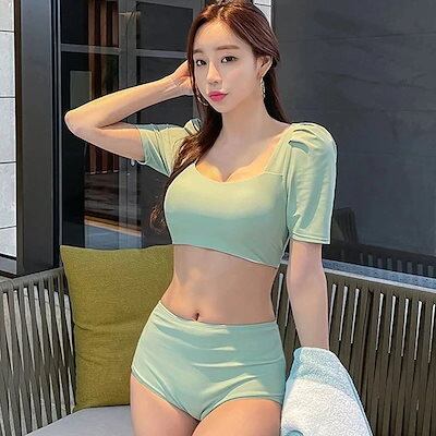水着 レディース ラッシュガード水着体型カバー カップ付きインナー ハイウエスト 人気 ギャザリング