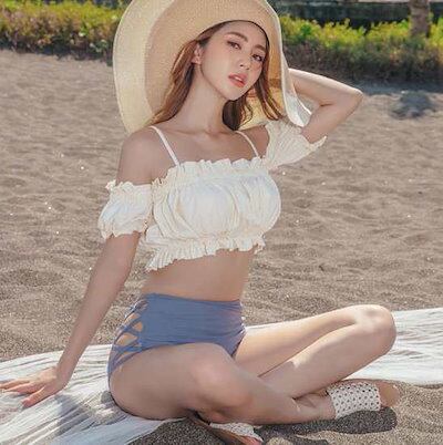 水着 レディース 水着 体型カバー ビキニ 大きいサイズ 夏 体型カバー 水着 韓国 着痩せエロい 2点セット ハイウエスト ビキニ タンキニ 水着 オフショルダー 水着